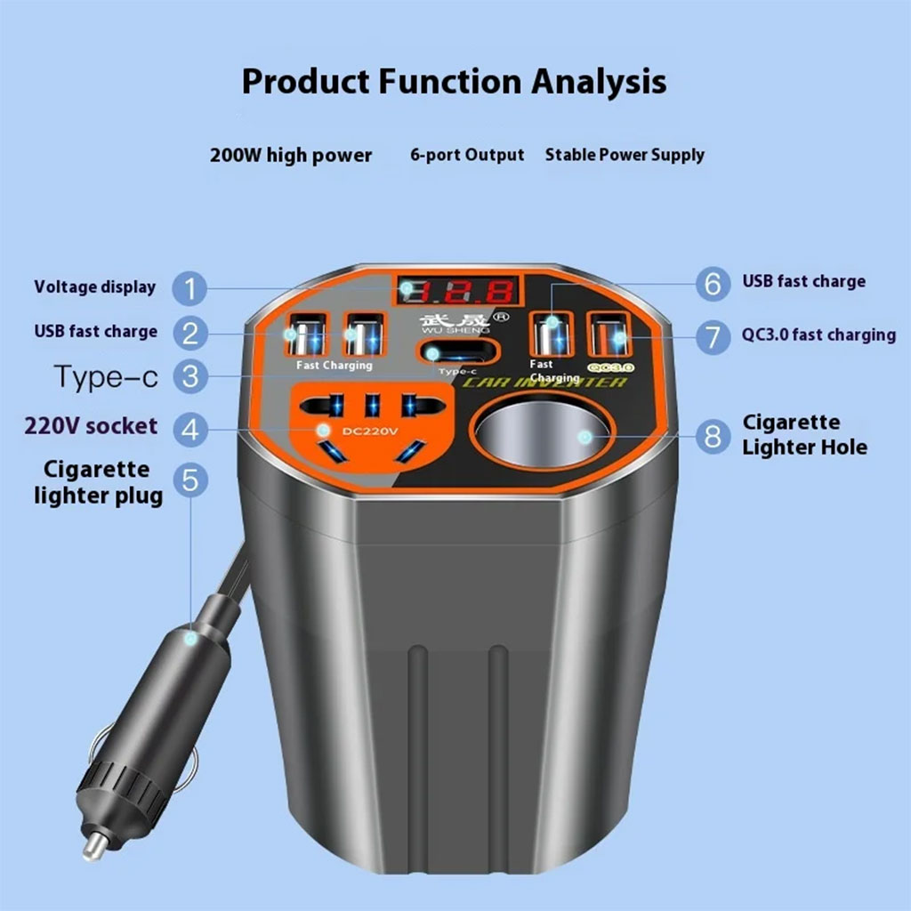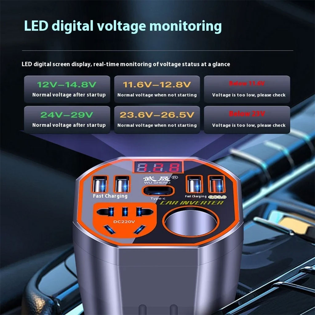 Convertisseur de Puissance pour Voiture 12V/24V vers DC220V Charge Rapide – محول التيار الكهربائي في السيارة